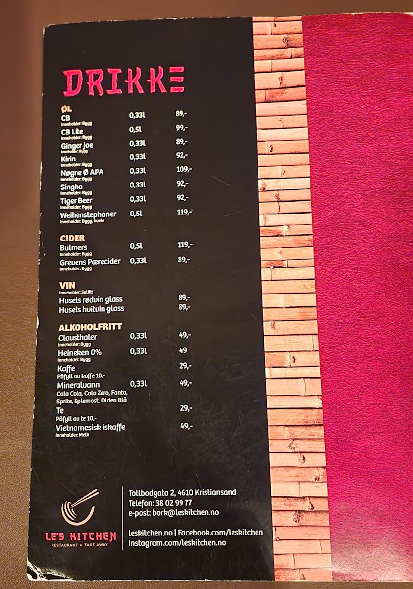 Welcome to Le s Kitchen, a hidden gem nestled in Kristiansand, Norway, where vibrant flavors and friendly service combine to create an unforgettable dining experience. While the restaurant may no longer be Vietnamese-owned, the chefs have mastered a delightful menu that pays homage to Asian cuisine. Guests rave about the weekend-only pho, which has garnered a loyal following for its authentic taste.